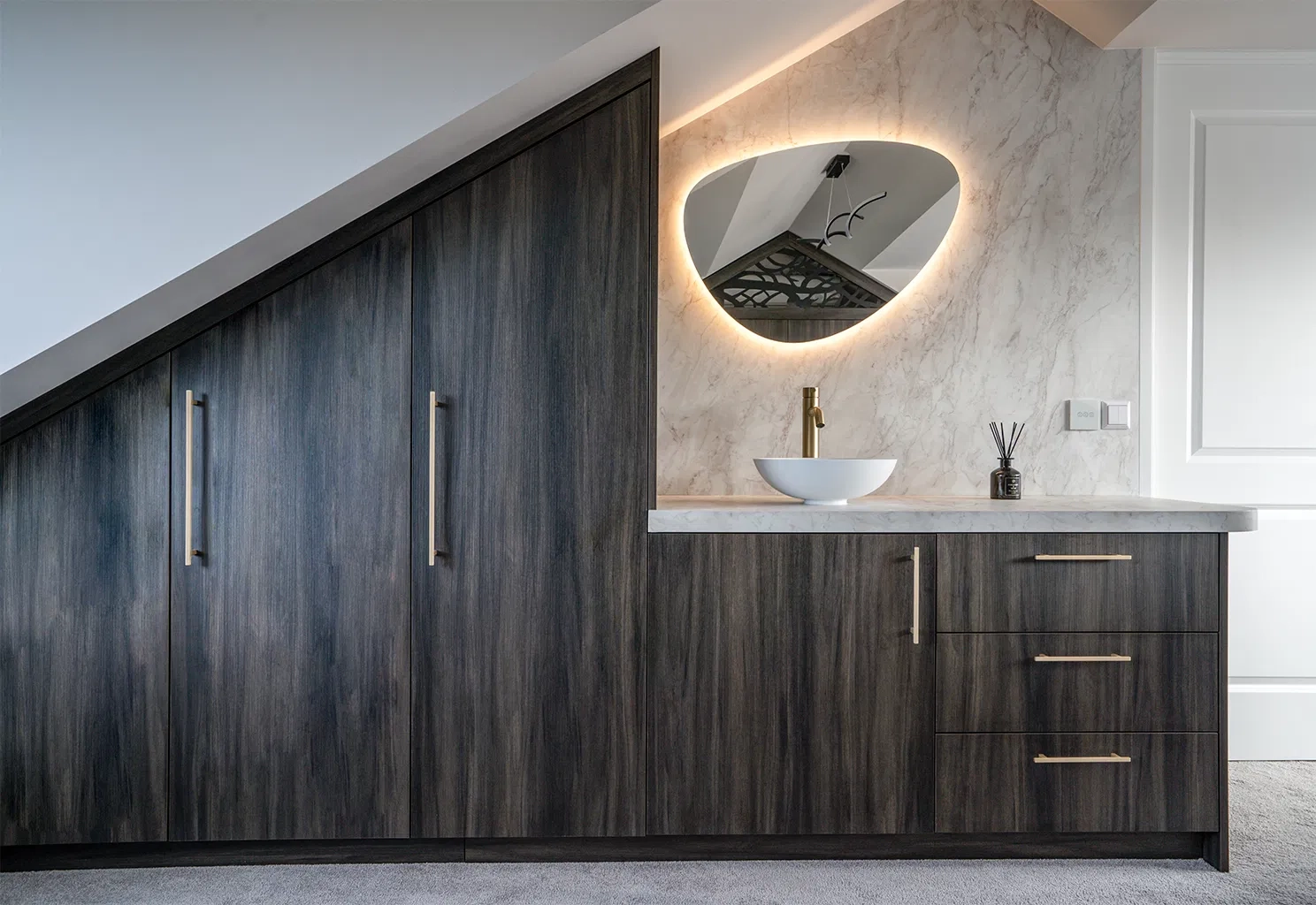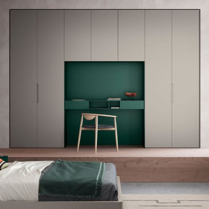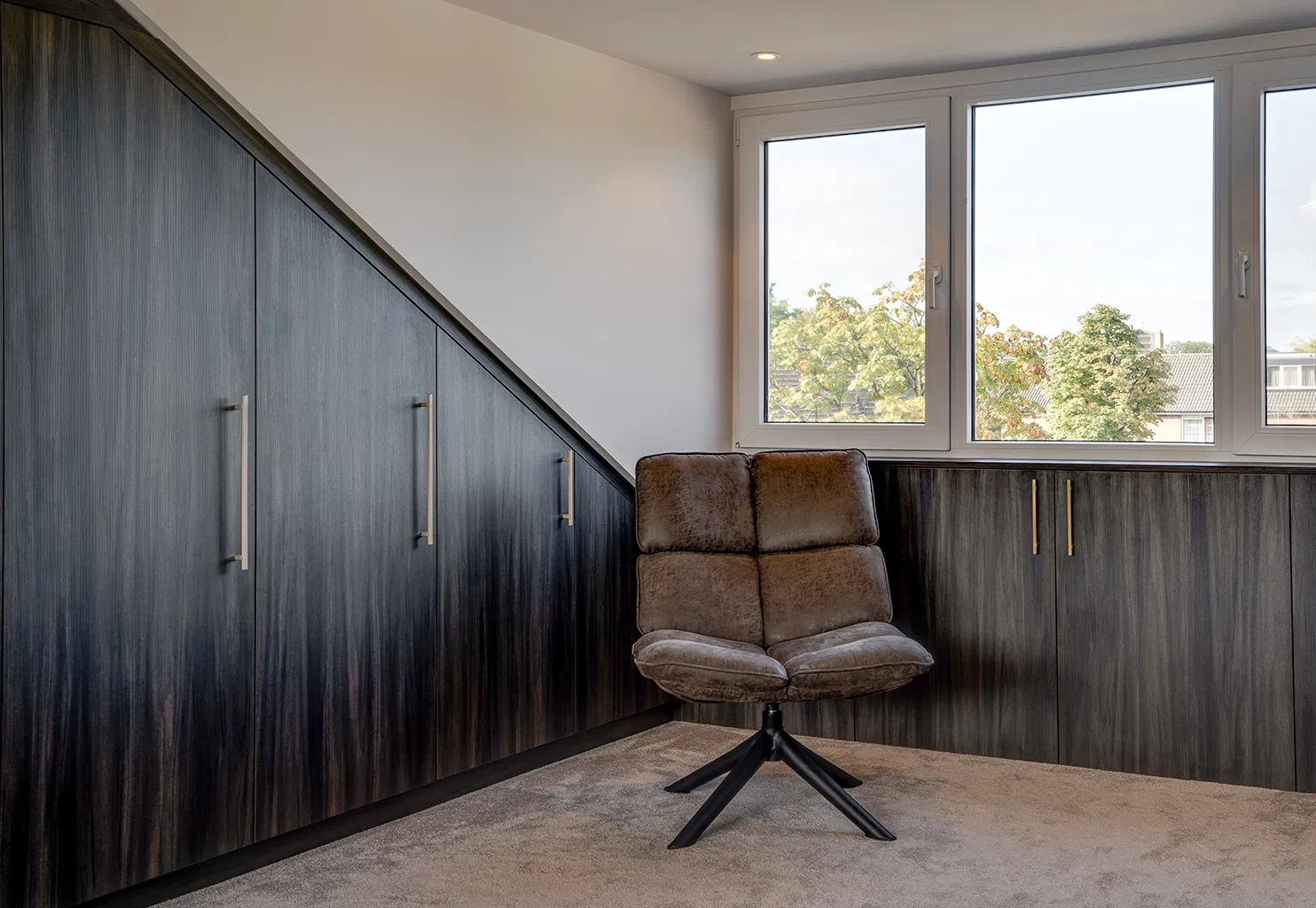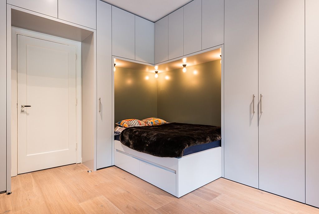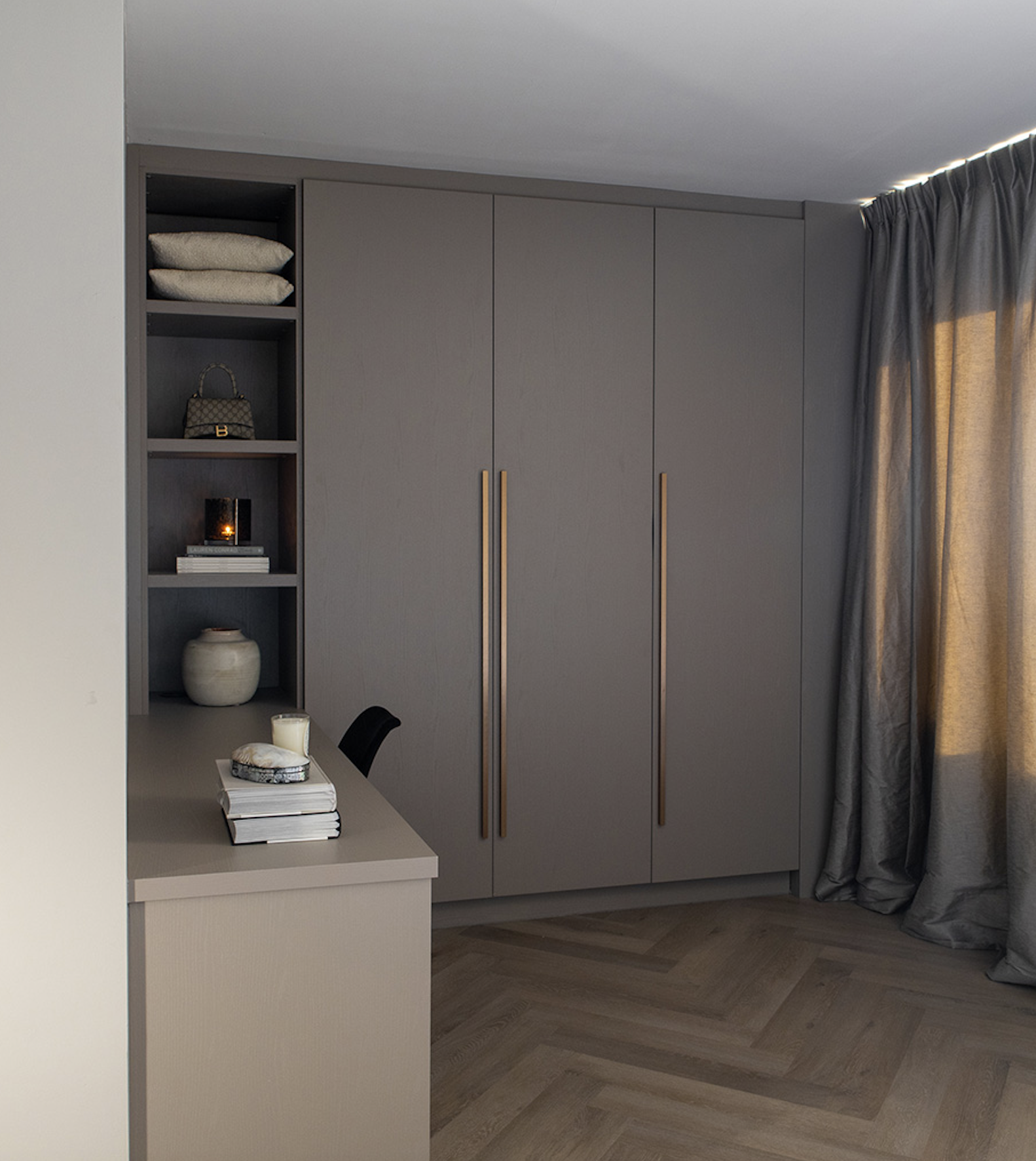 Een slaapkamer moet rust uitstralen. Daar is immers de ruimte voor bedoeld. Om uit te rusten. Wij richten ruimtes in. Efficiënt en fraai. Efficiënt door de volledige beschikbare ruimte zo optimaal mogelijk te benutten. Van muur tot muur, van vloer tot plafond.